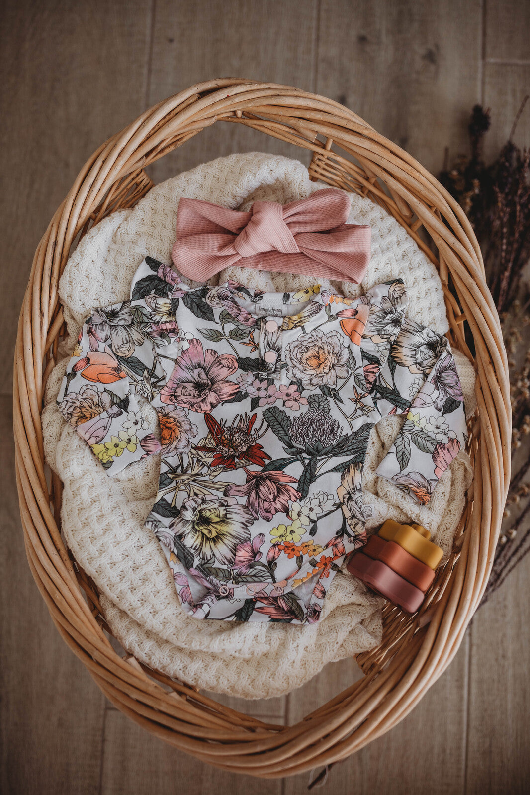 Comfortable enough for sleep, you can transition to socialite in an instant. Add a piece of coordinating headwear and you are ready to go! Used for the most stylish babes, our baby bodysuits are suitable for loungewear, daywear, birth announcement photos and even baby gifts. Our bodysuits make your bub’s wardrobe beautiful.