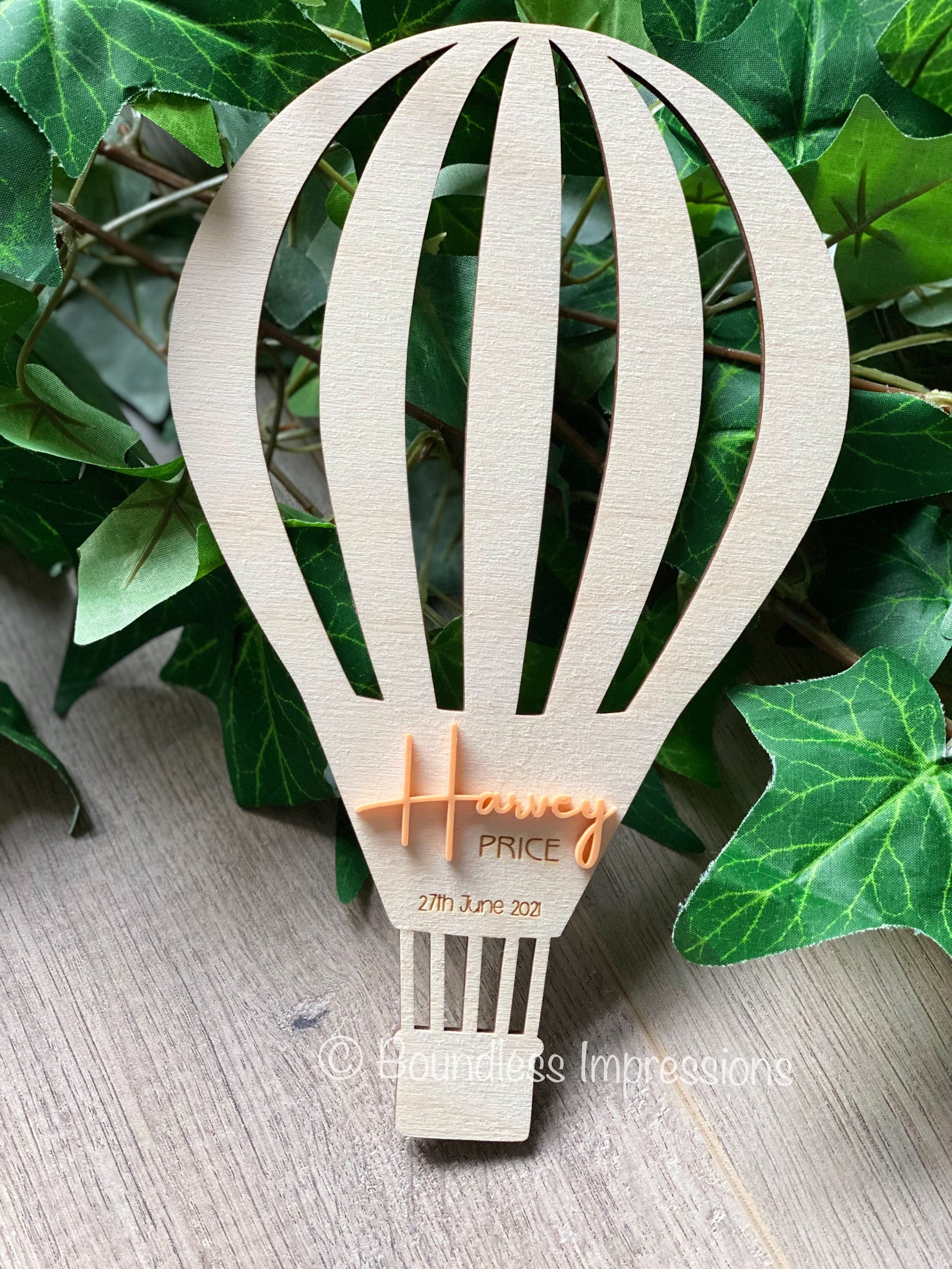 What wonderful news! You're having a baby!! There is nothing more exciting than the much anticipated birth of your baby so announce their arrival with this gorgeous hot air balloon plaque which can later be displayed on the wall in their nursery.