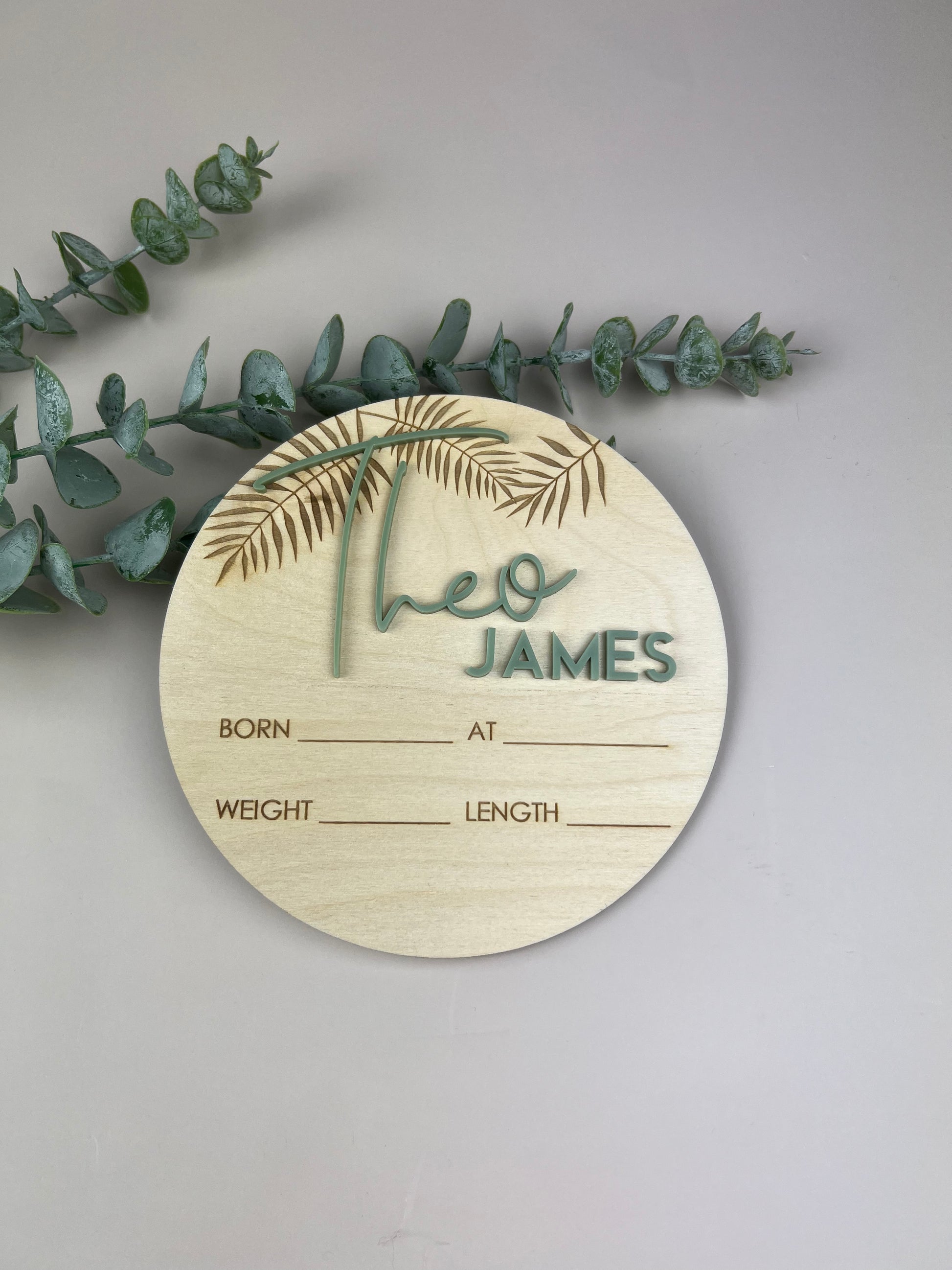 Introducing your Baby to the World for the First time is such a special moment! Capture that first introduction with our 15cm or 20cm round timber announcement plaque which is personalised with your babies name in your choice colour acrylic and has space to write in those important birth details.