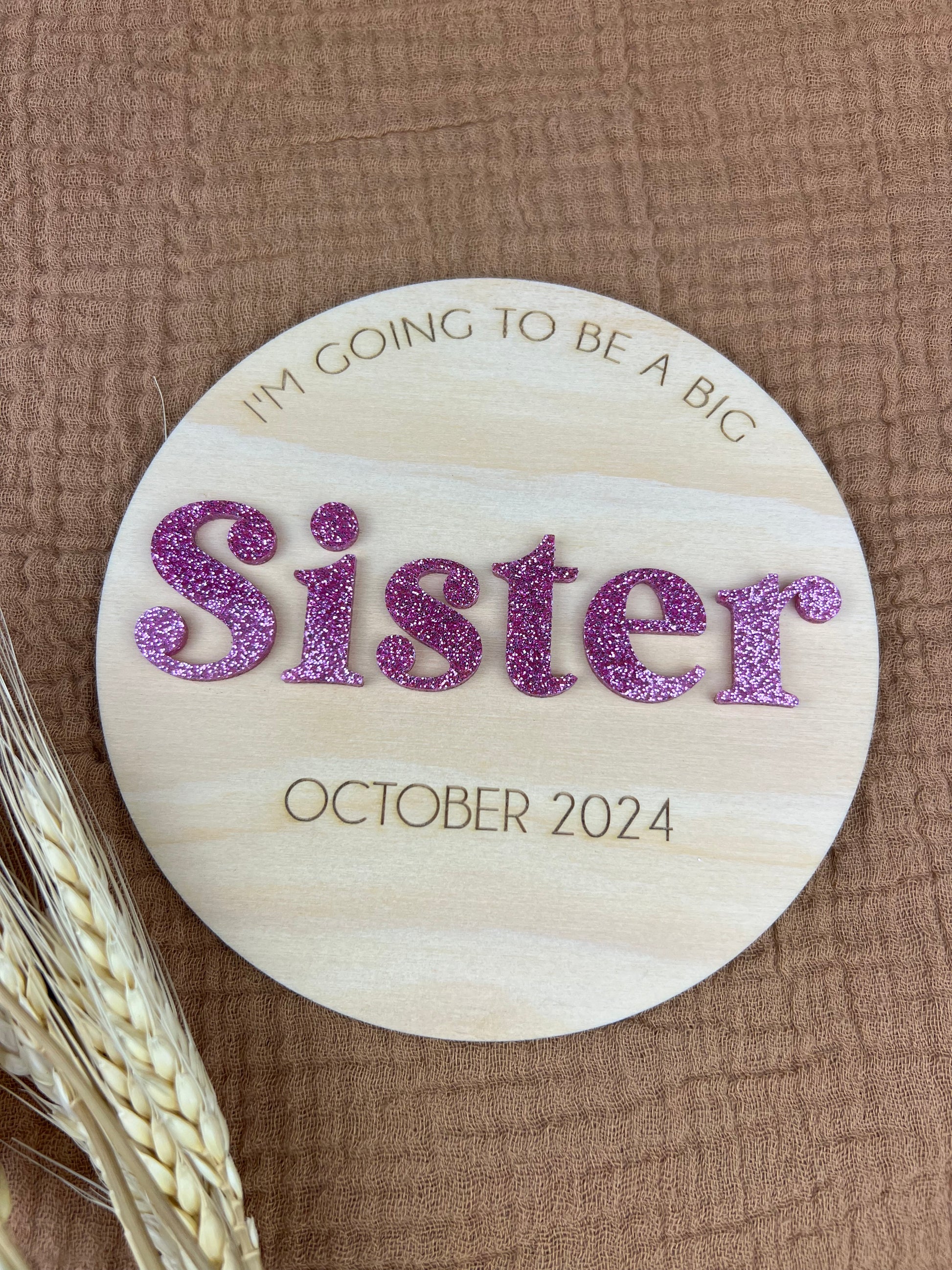 Now your child can help make the announcmenet using our timber plaques with the word Brother or Sister in your choice of Acrylic colour.