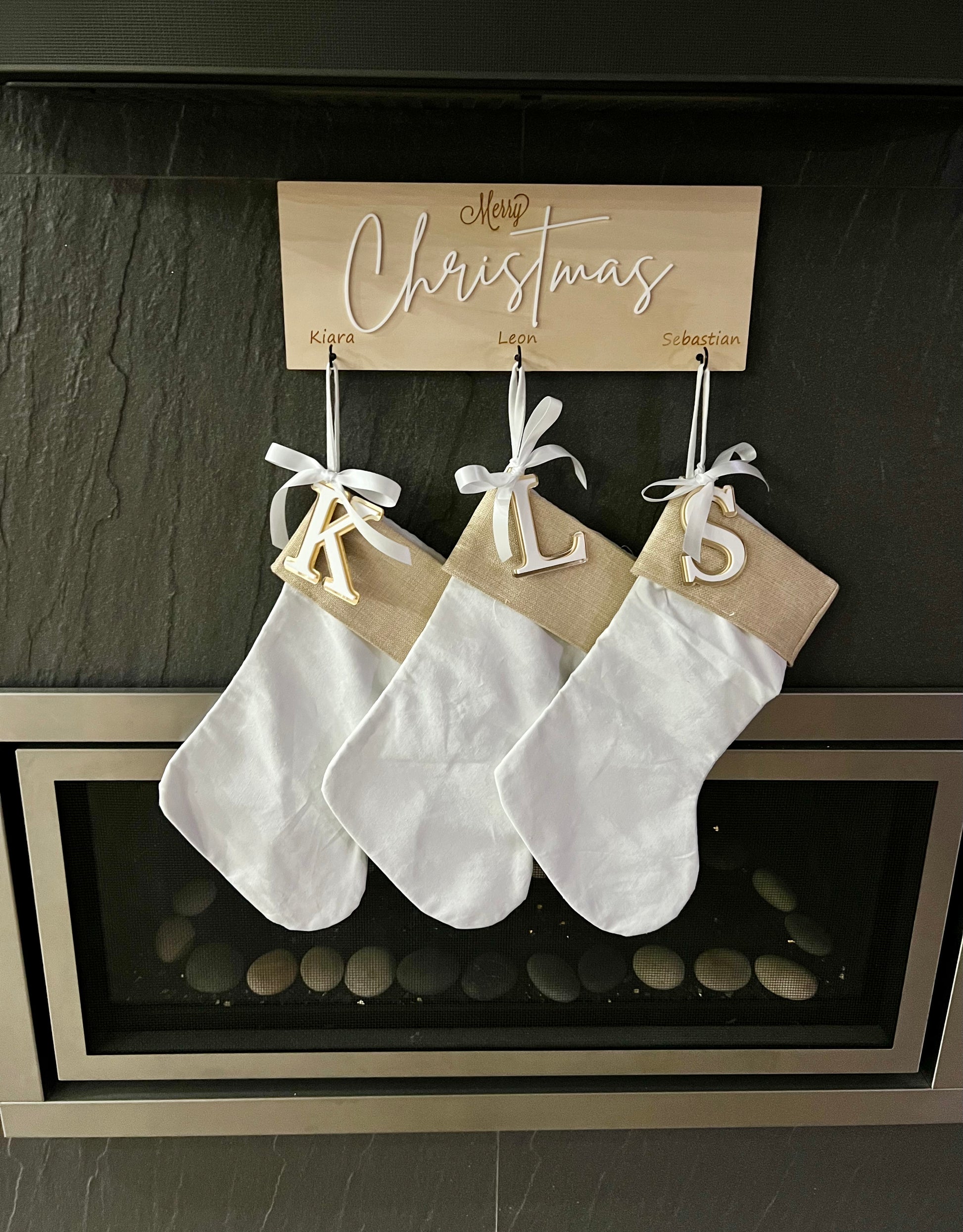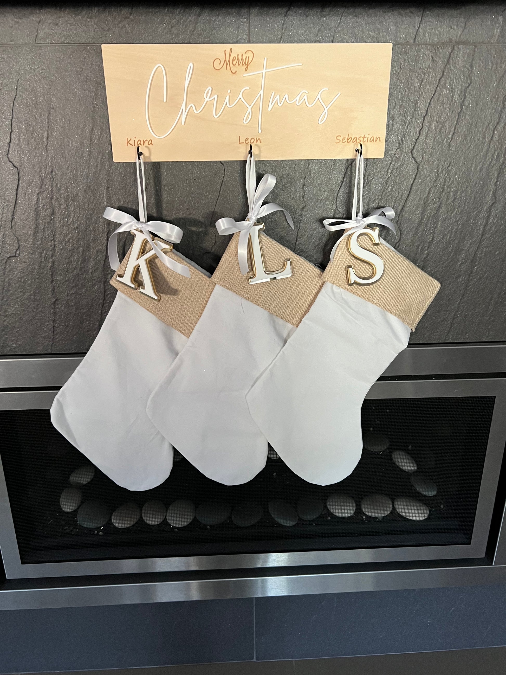 Burlap/Canvas Christmas Stocking + Initial Acrylic Tag