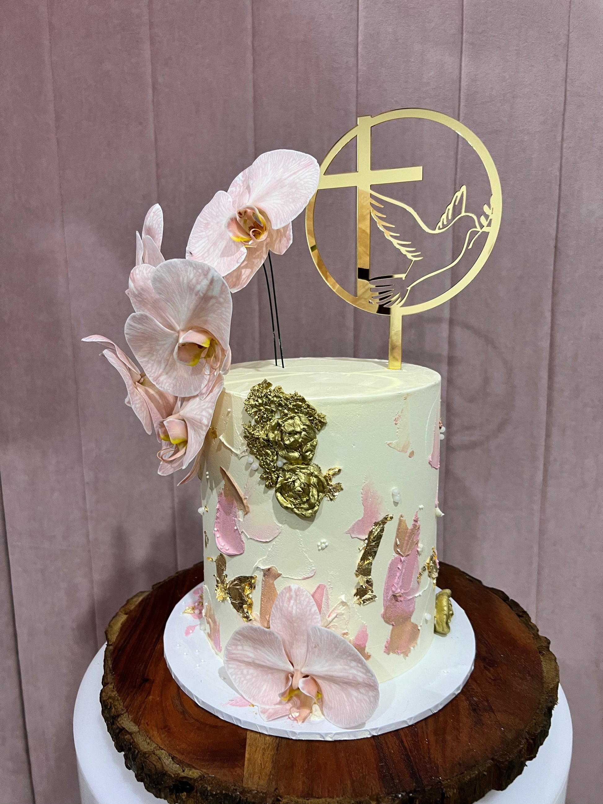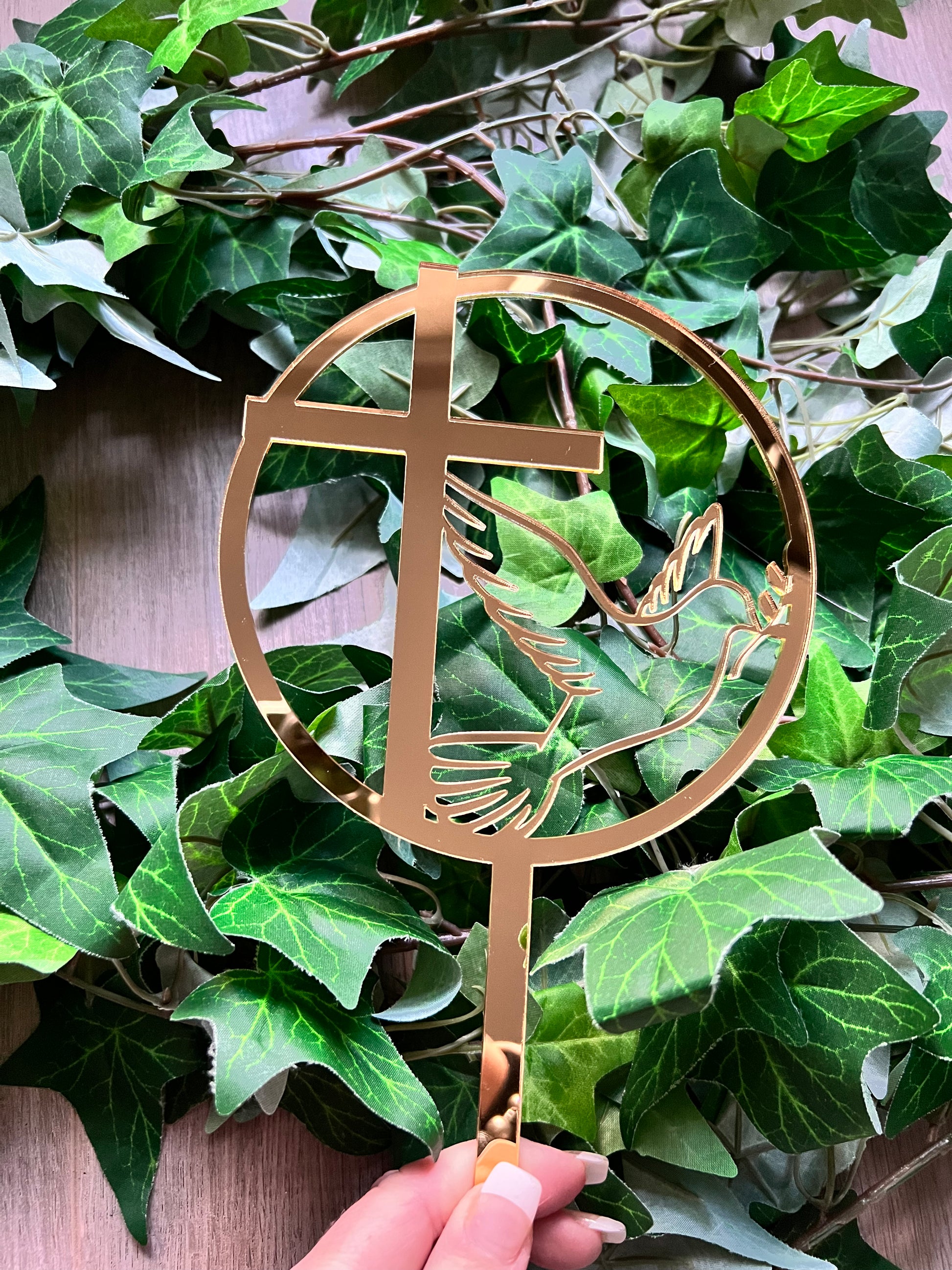 This design is a hoop design with Cross & Dove Symbolising Confirmation.