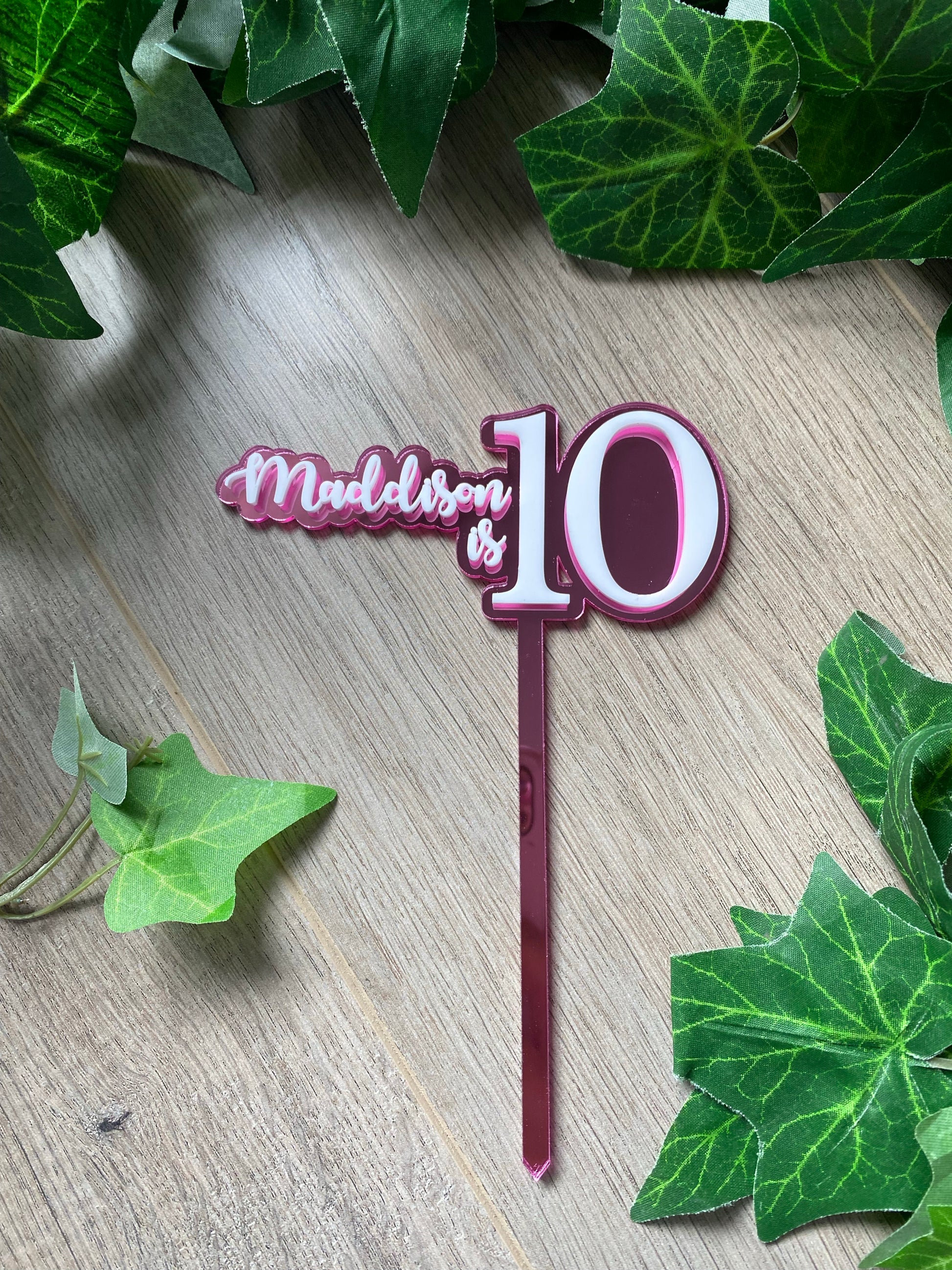 Name/Number Medium 2 Layer Acrylic Cake Topper (11cm)
