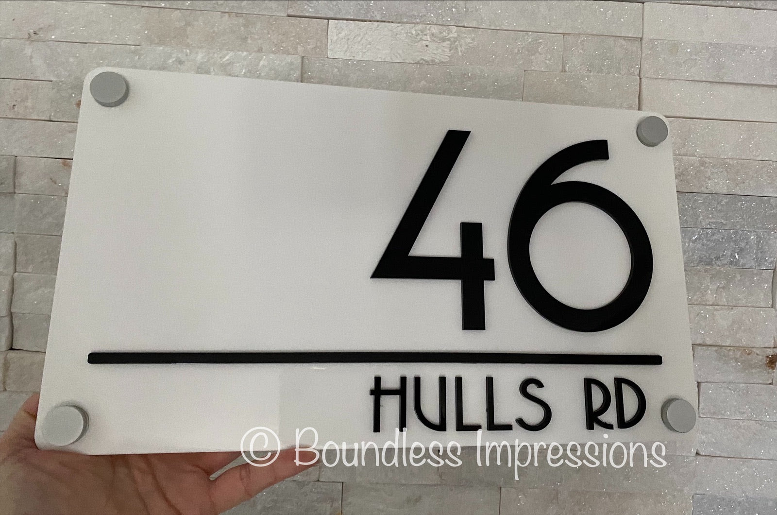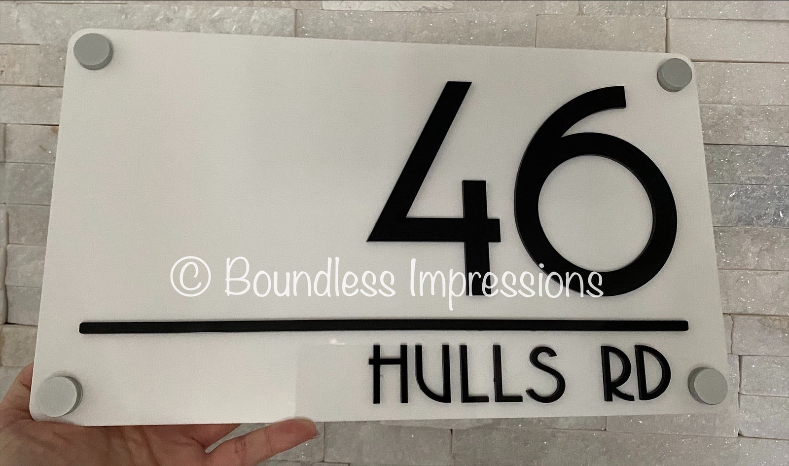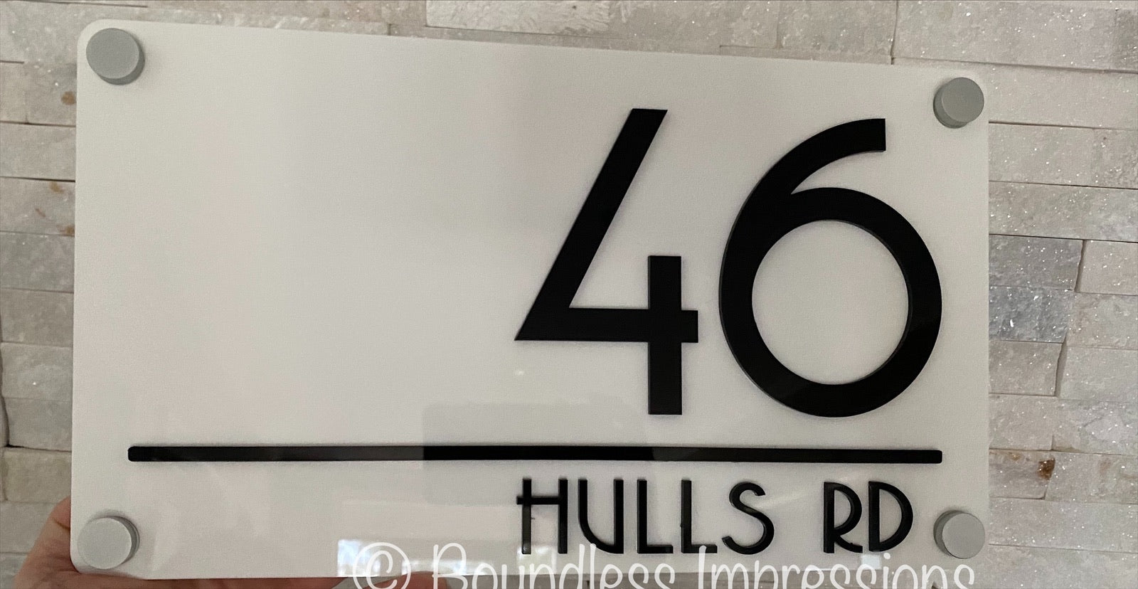 Made from one layer acrylic plaque topped with acrylic lettering, these are light weight, durable & can withstand any weather.
