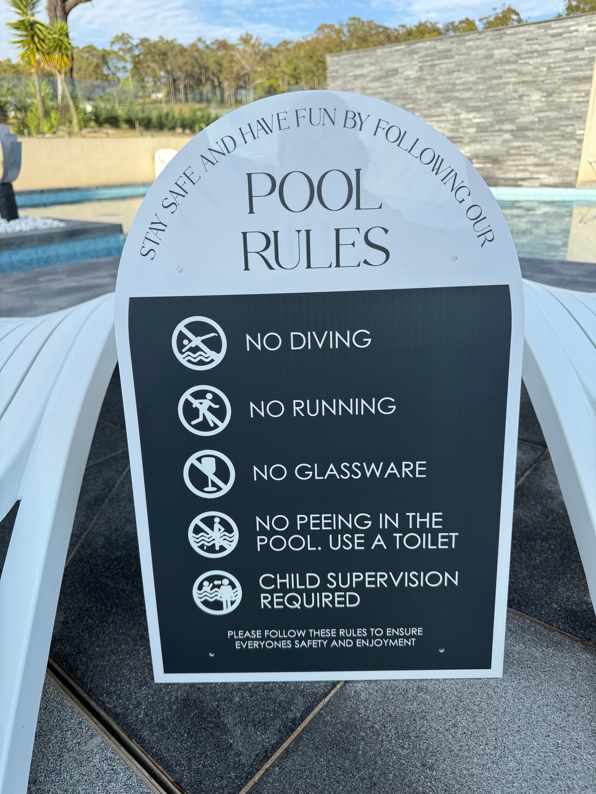 Stay Compliant (in every state of Australia) with our stylish Pool CPR Safety Signs on One Side and Pool Rules on the Other!
