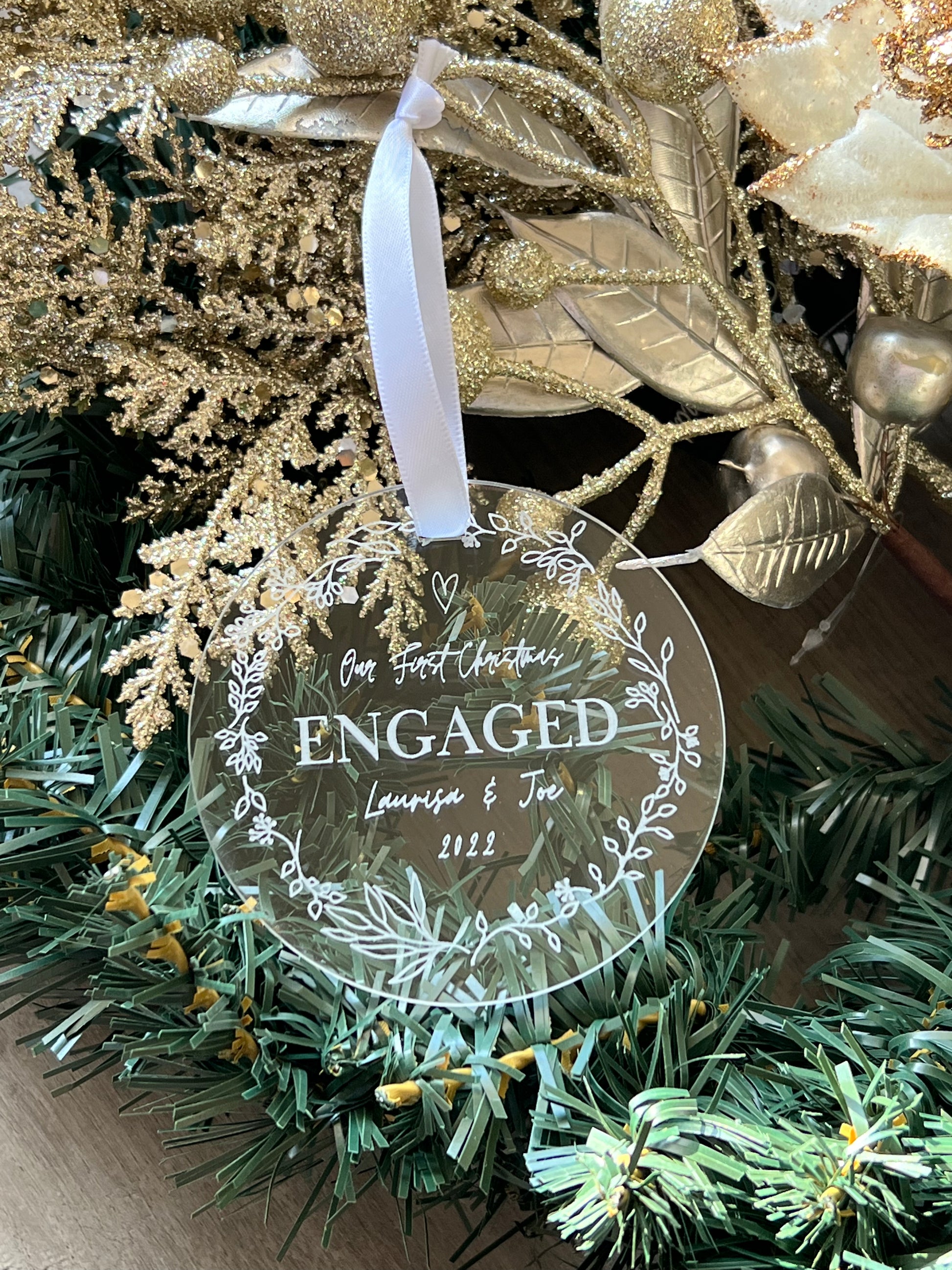 These ornaments are made from 3mm thick clear acrylic with text engraved onto them meaning you can use them year after year.