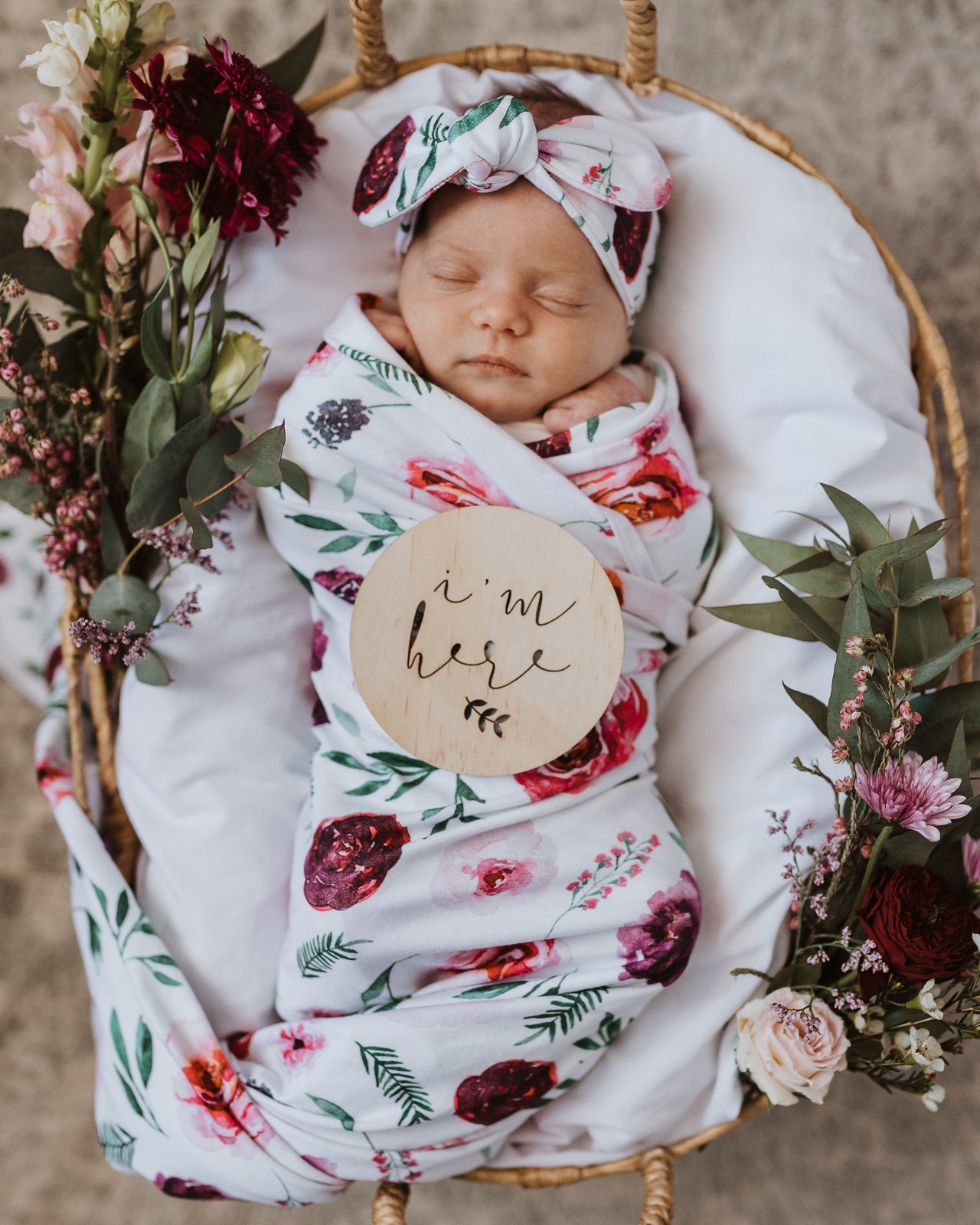 Our Cotton Jersey Wrap is soft and stretchy, it moves and stretches with baby. This wrap comes with a matching topknot.