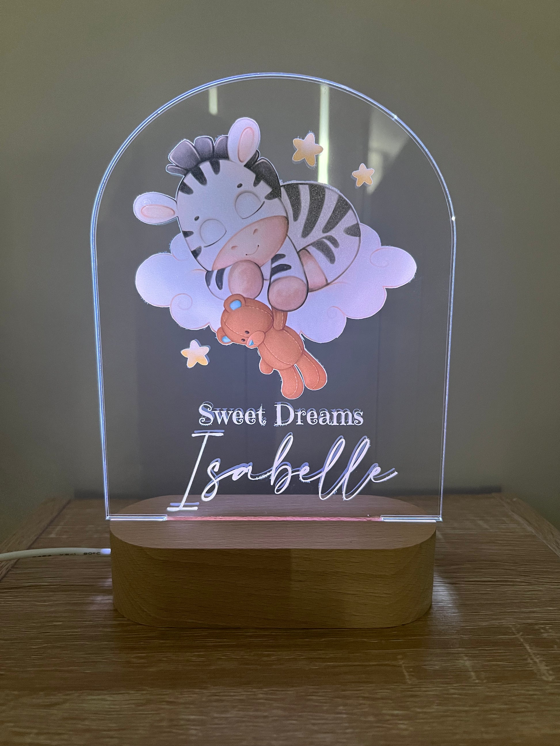 Personalised Arch Night Light - Printed Sleeping Zebra
