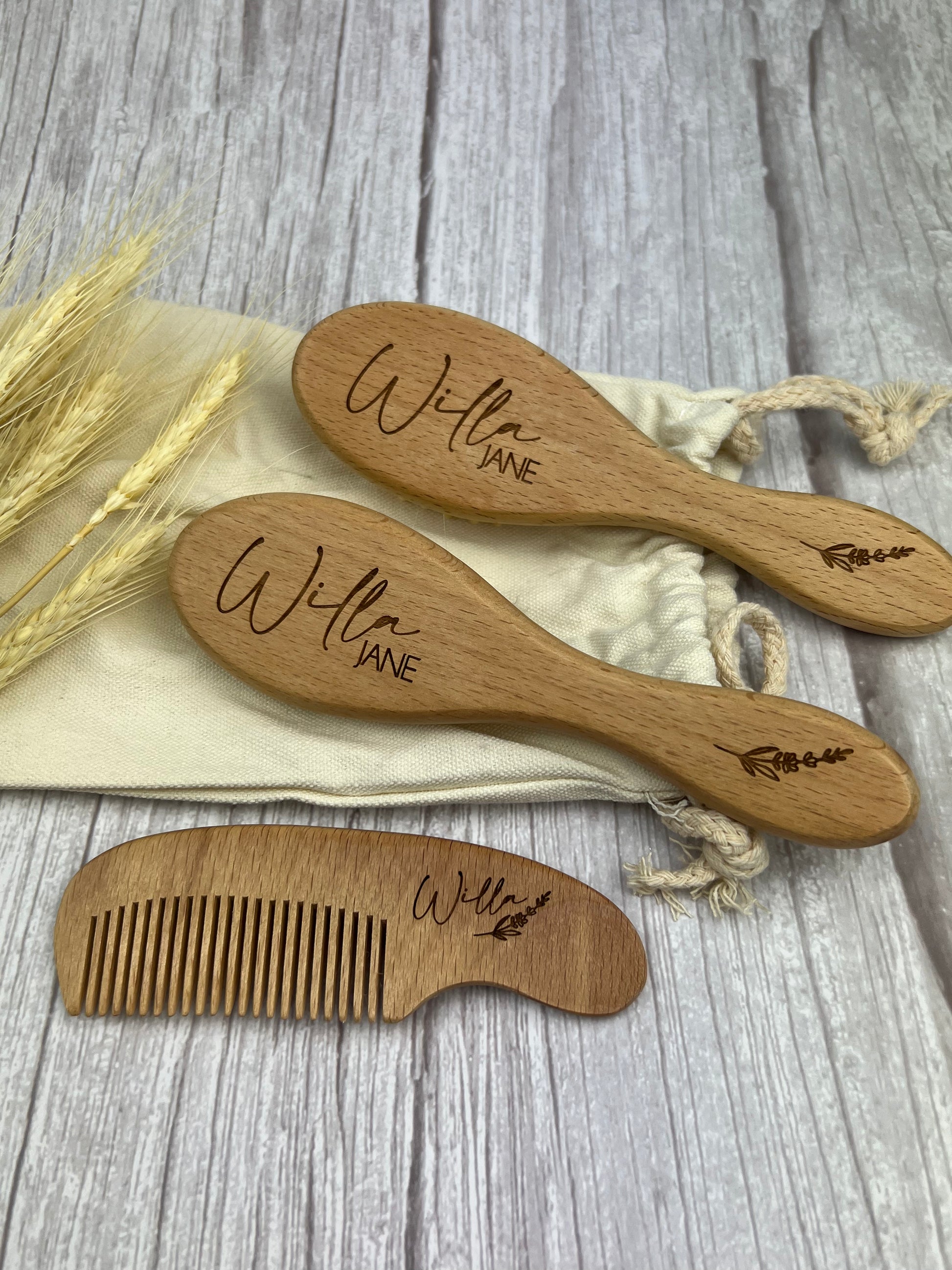 These gorgeous engraved 3 piece personalised hair brush sets include the following: