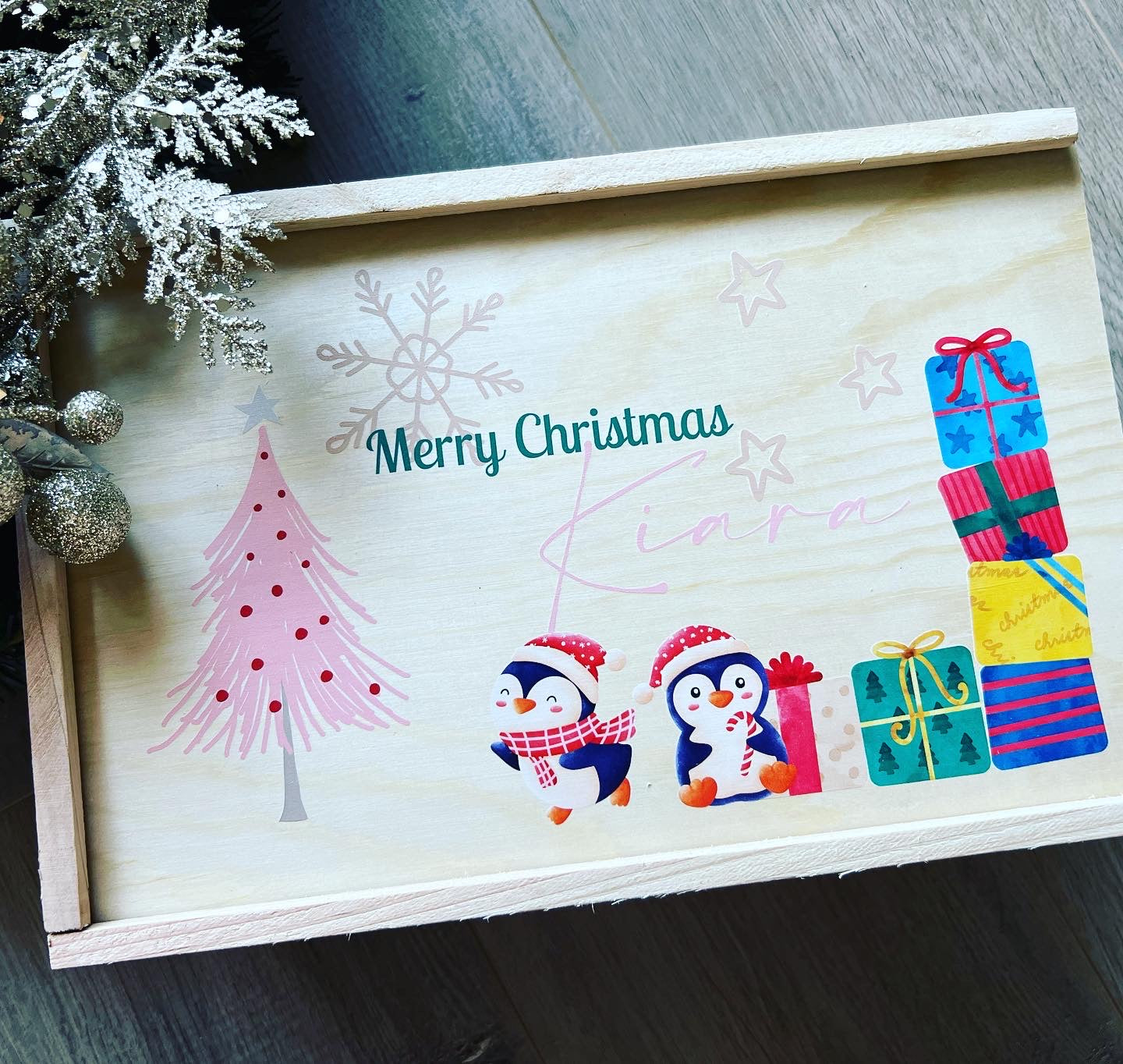 Box has a sliding lid engraved with the Christmas Eve design & name of your choice.