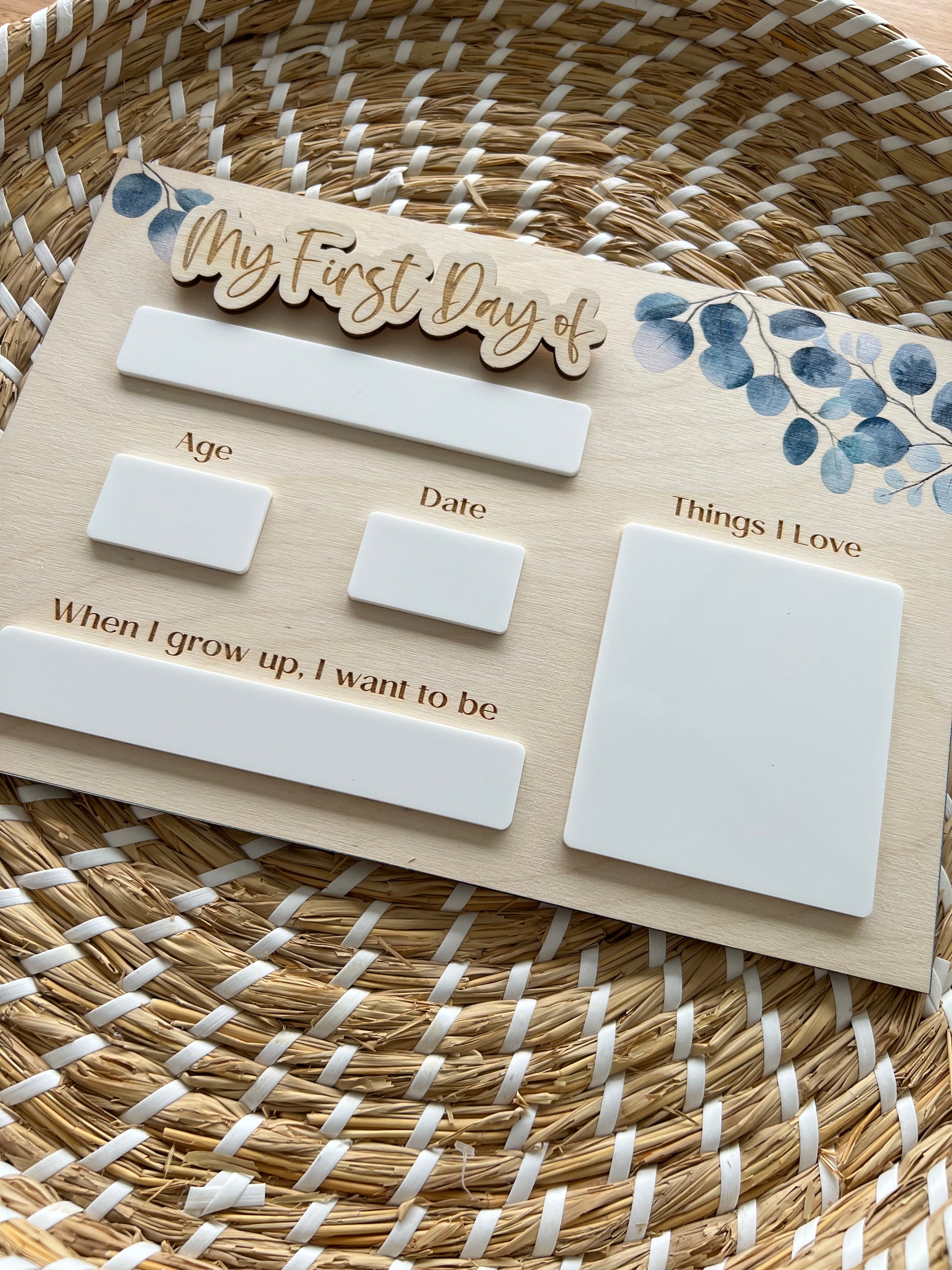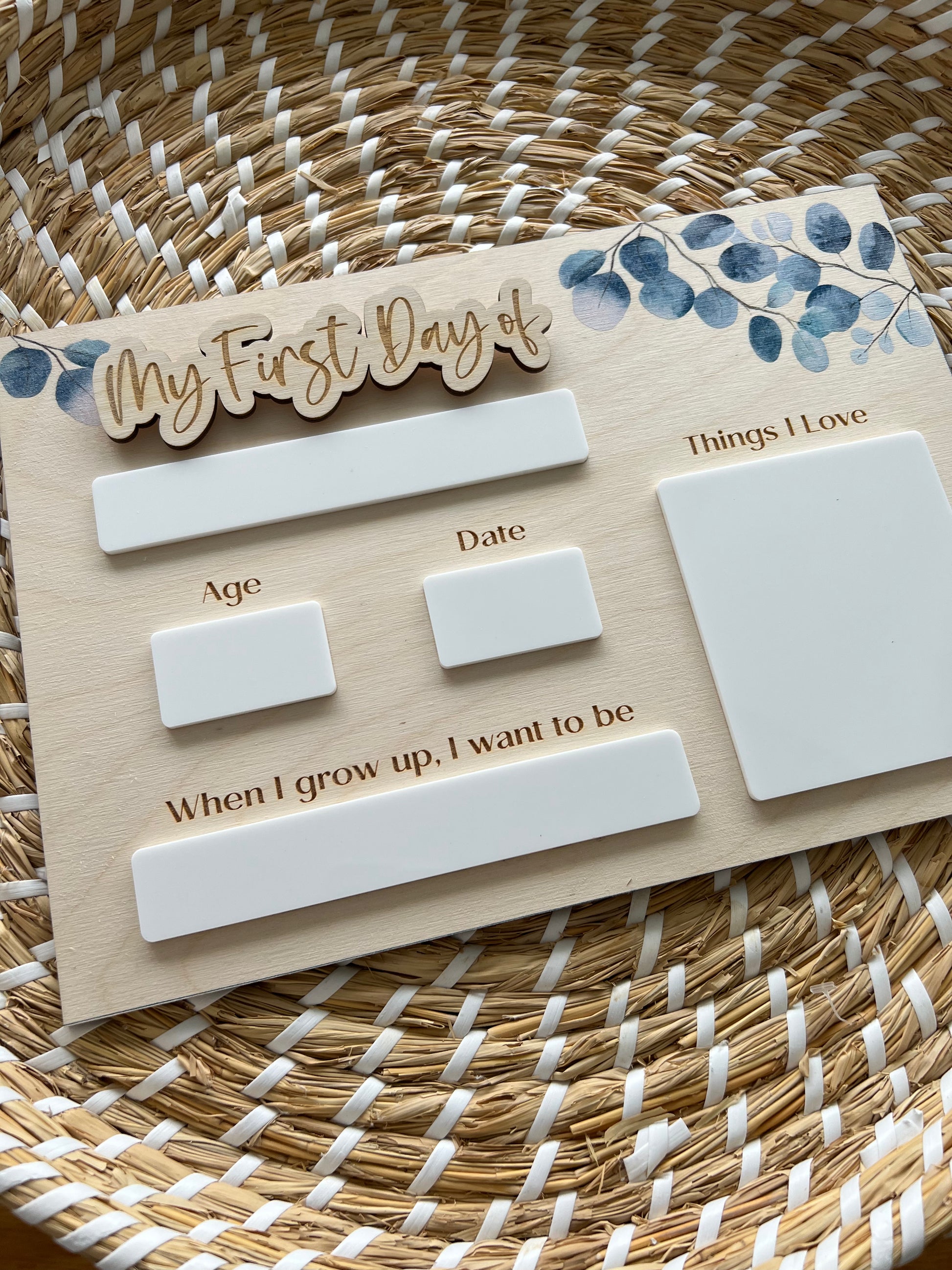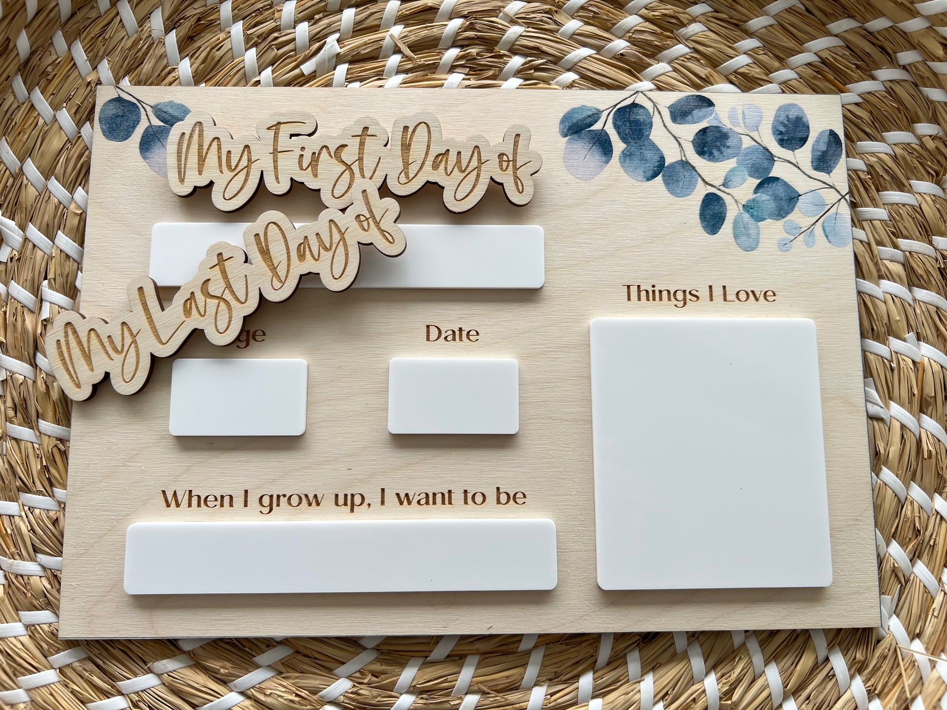 Printed Interchangable 'First/Last Day of' Boards (Eucalyptus)