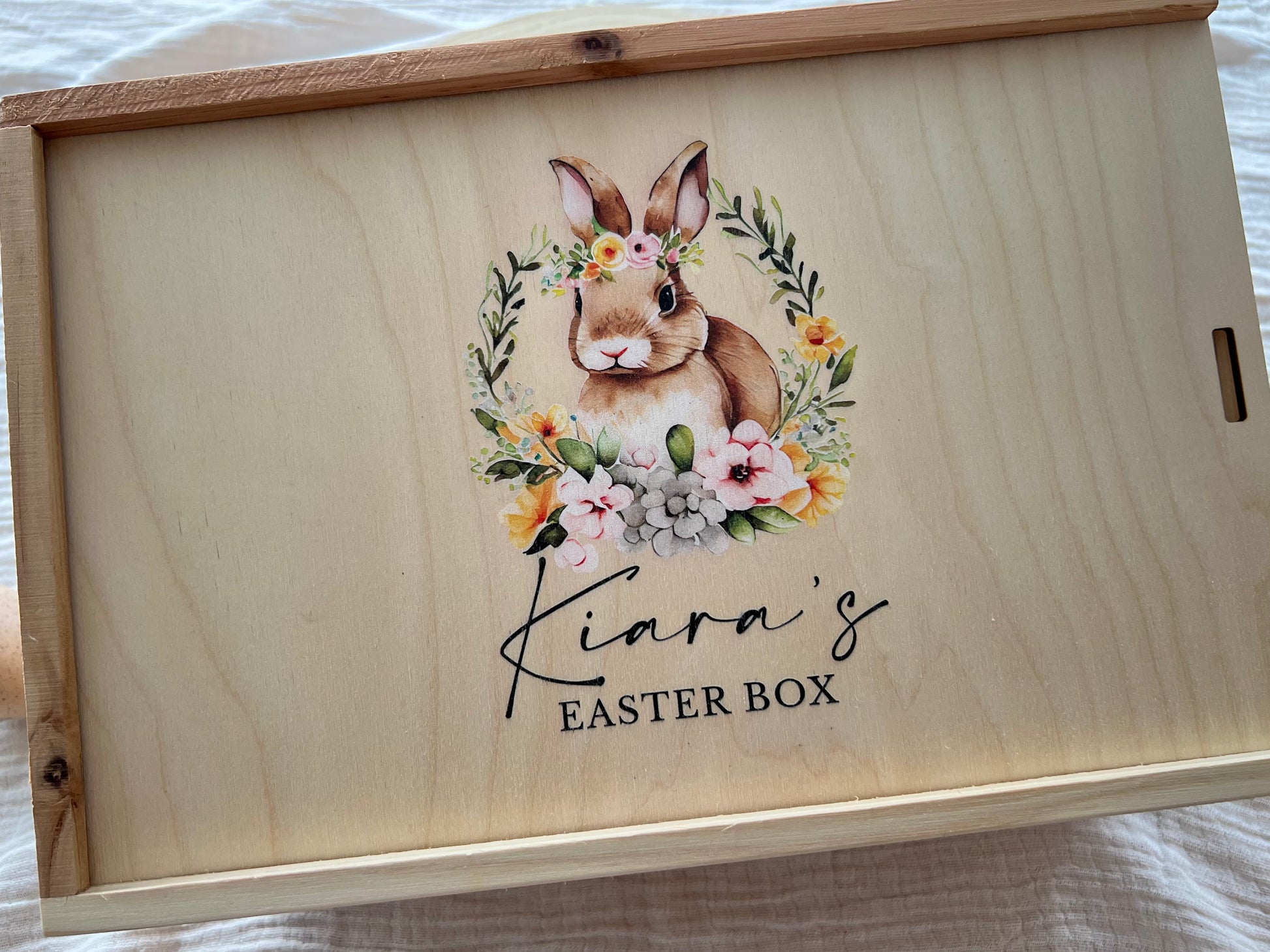 Personalised Timber Boxes make a gorgeous gift for Easter and can be reused as a keepsake box for years to come.