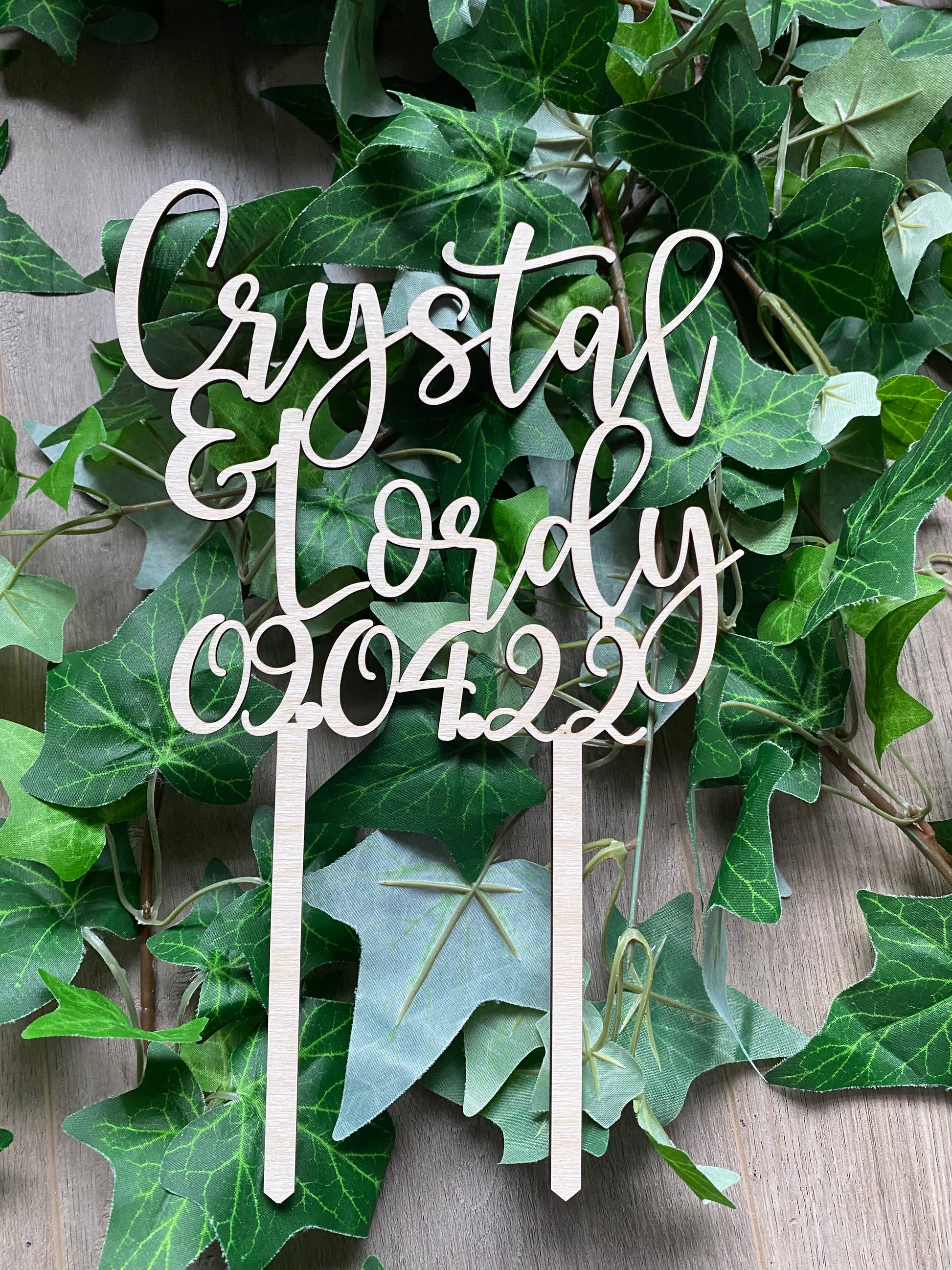 Timber Cake Toppers are cut from 4mm Natural Plywood and can be done in many different designs.