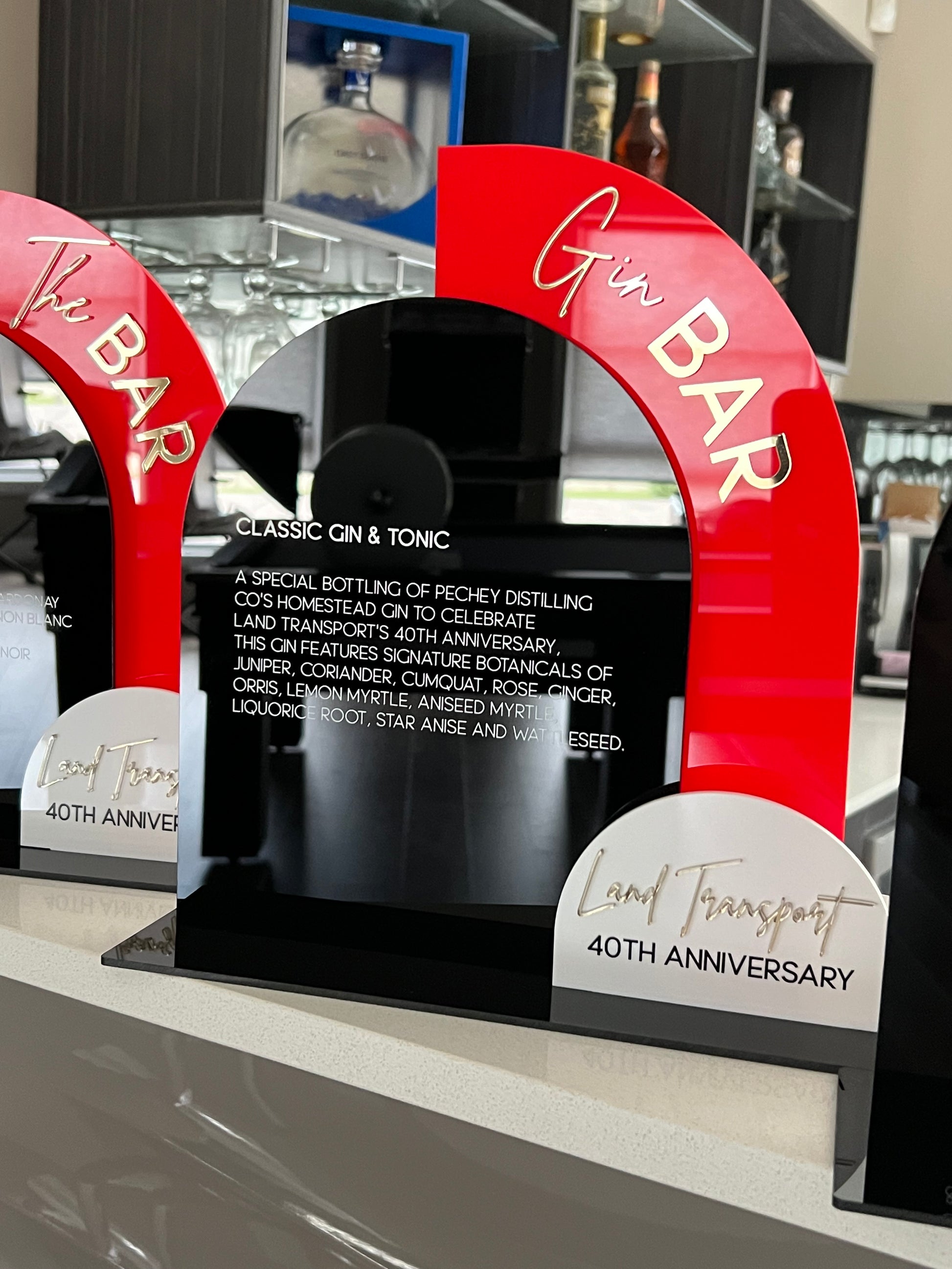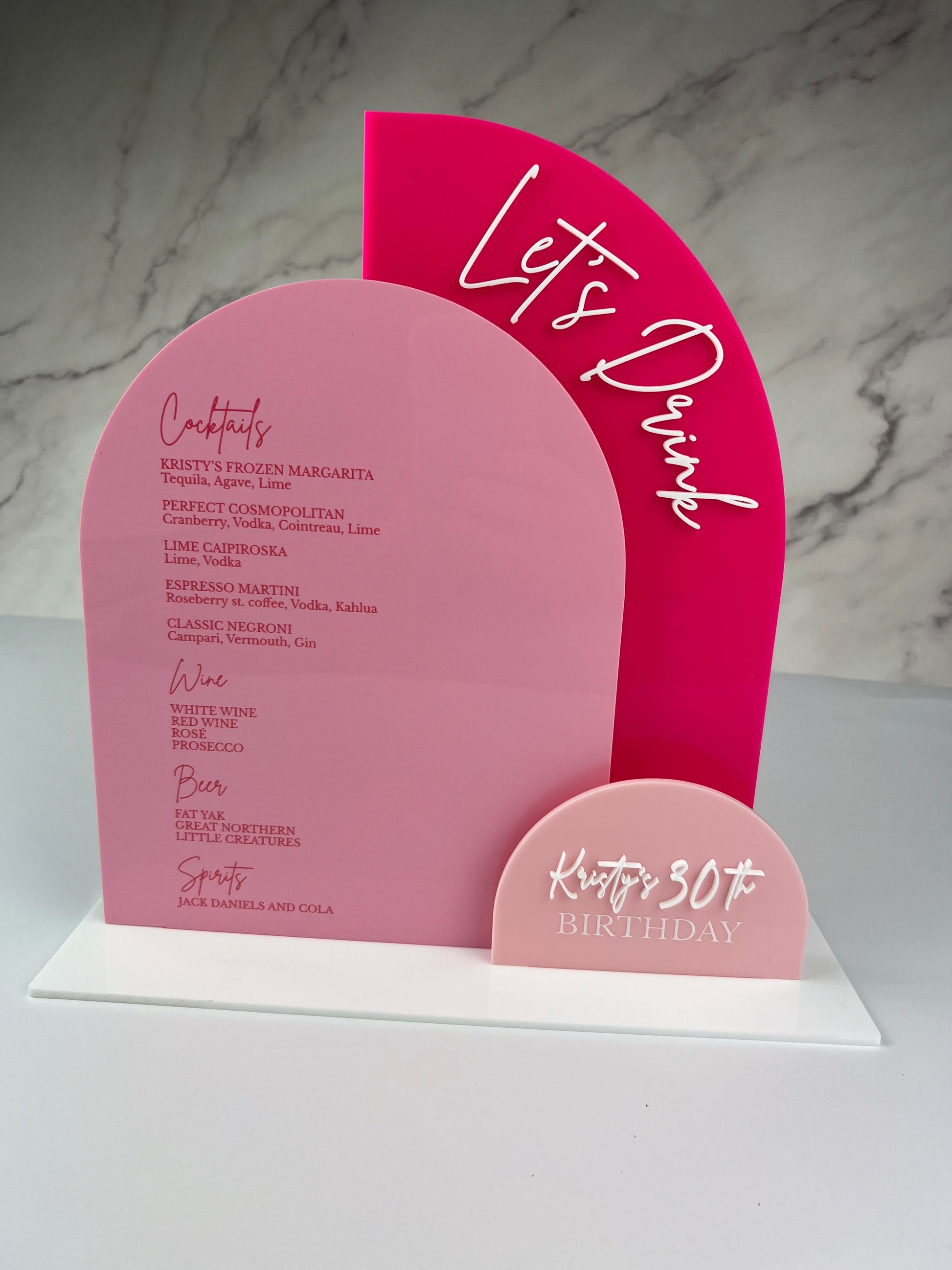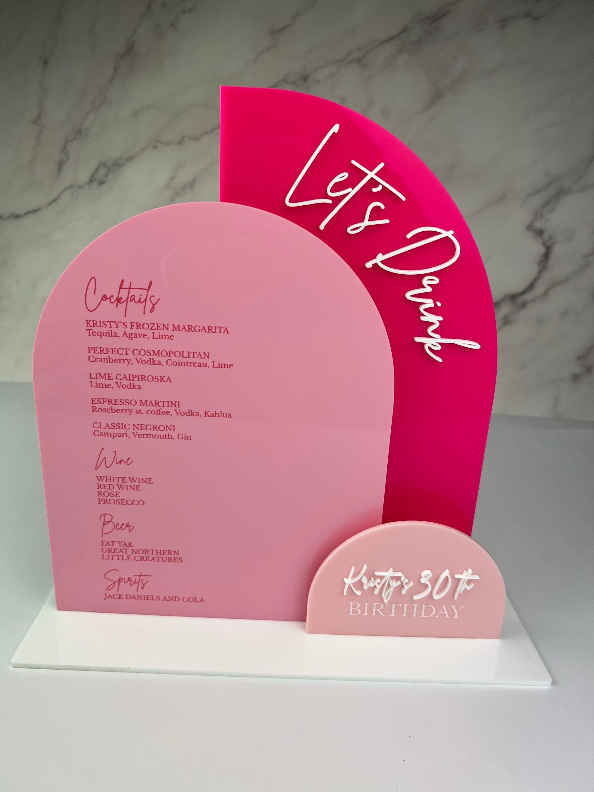 With its triple arch design and Vibrant Acrylic Material, this menu stand will elevate any party setting.