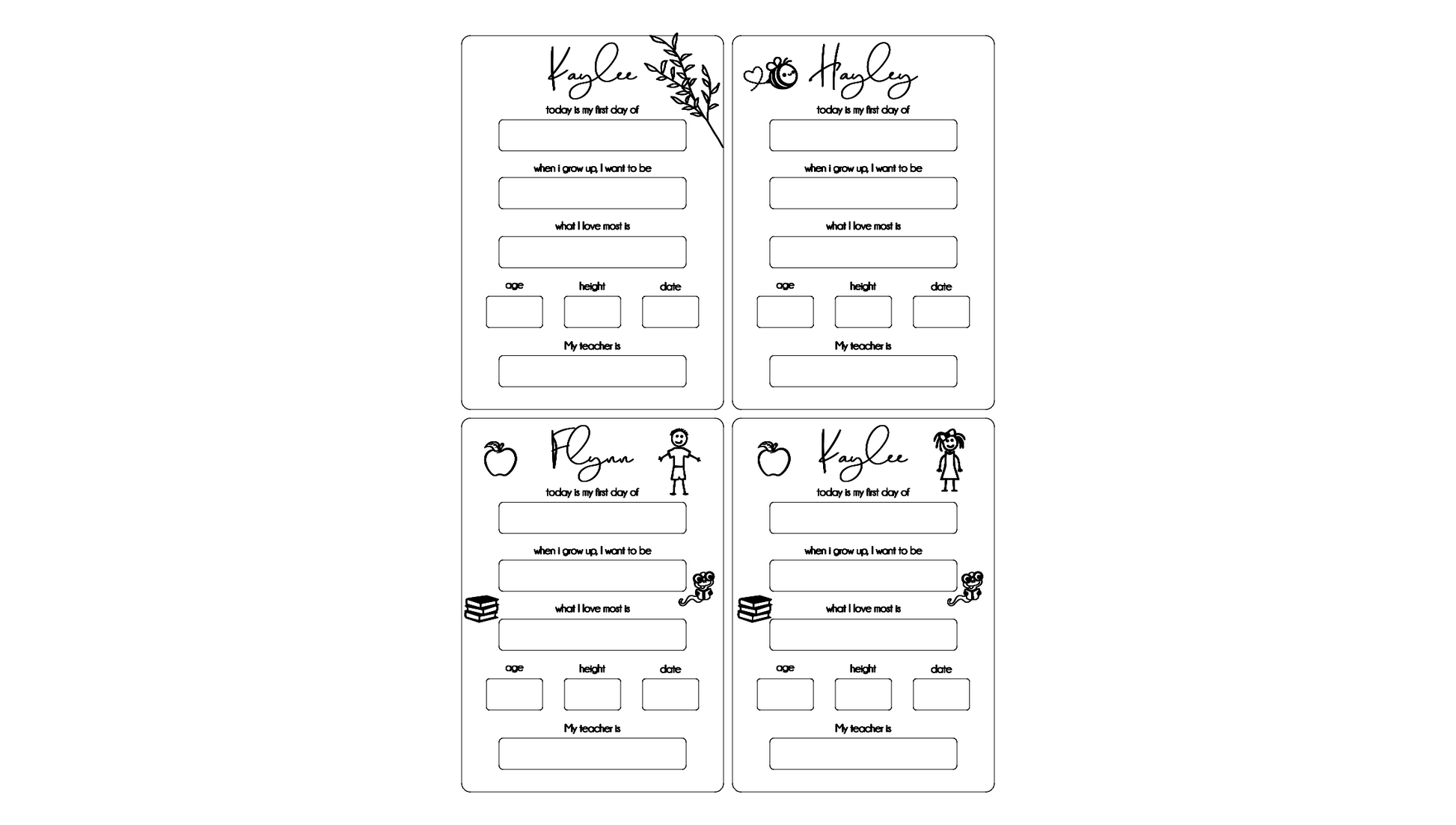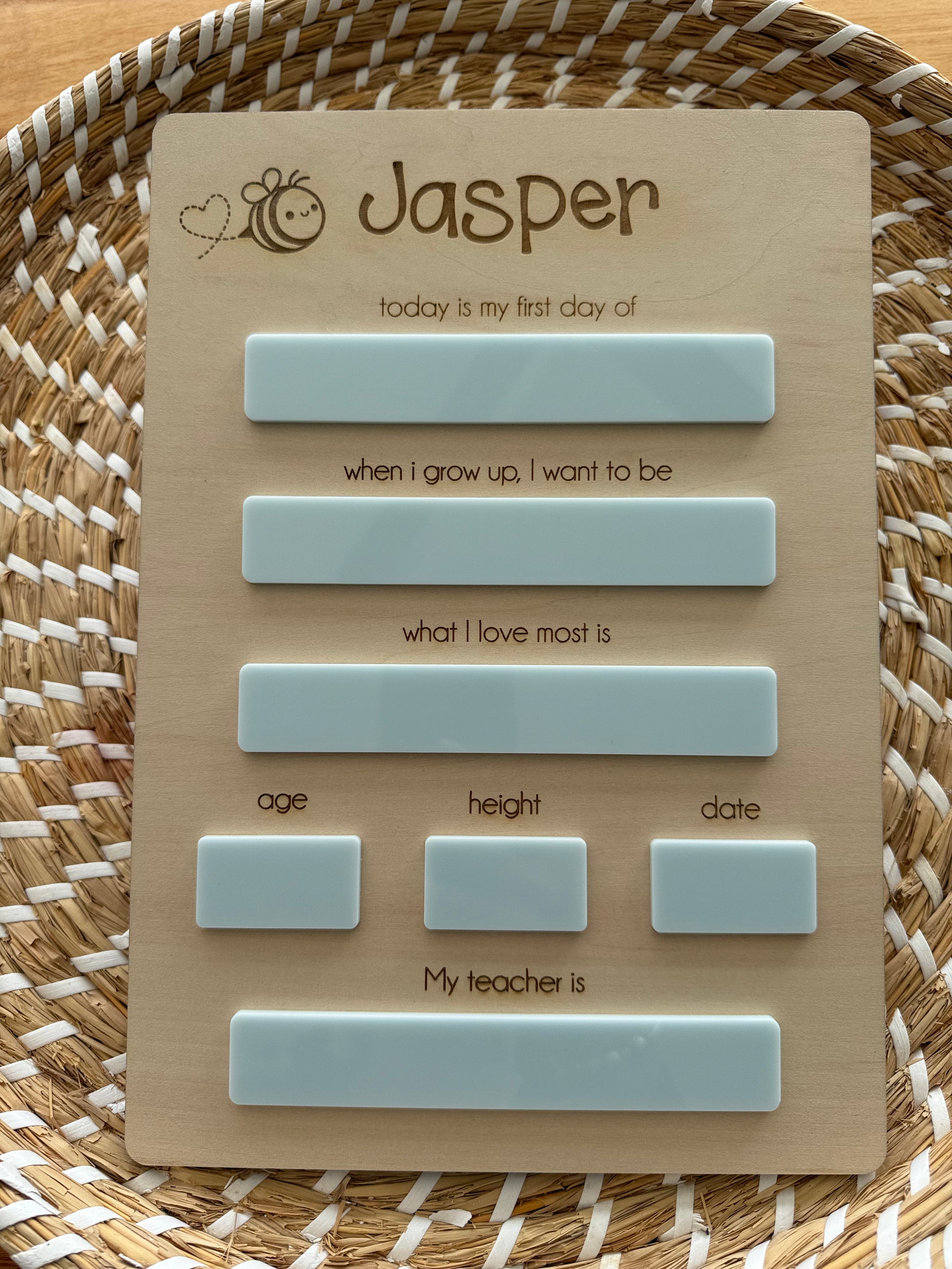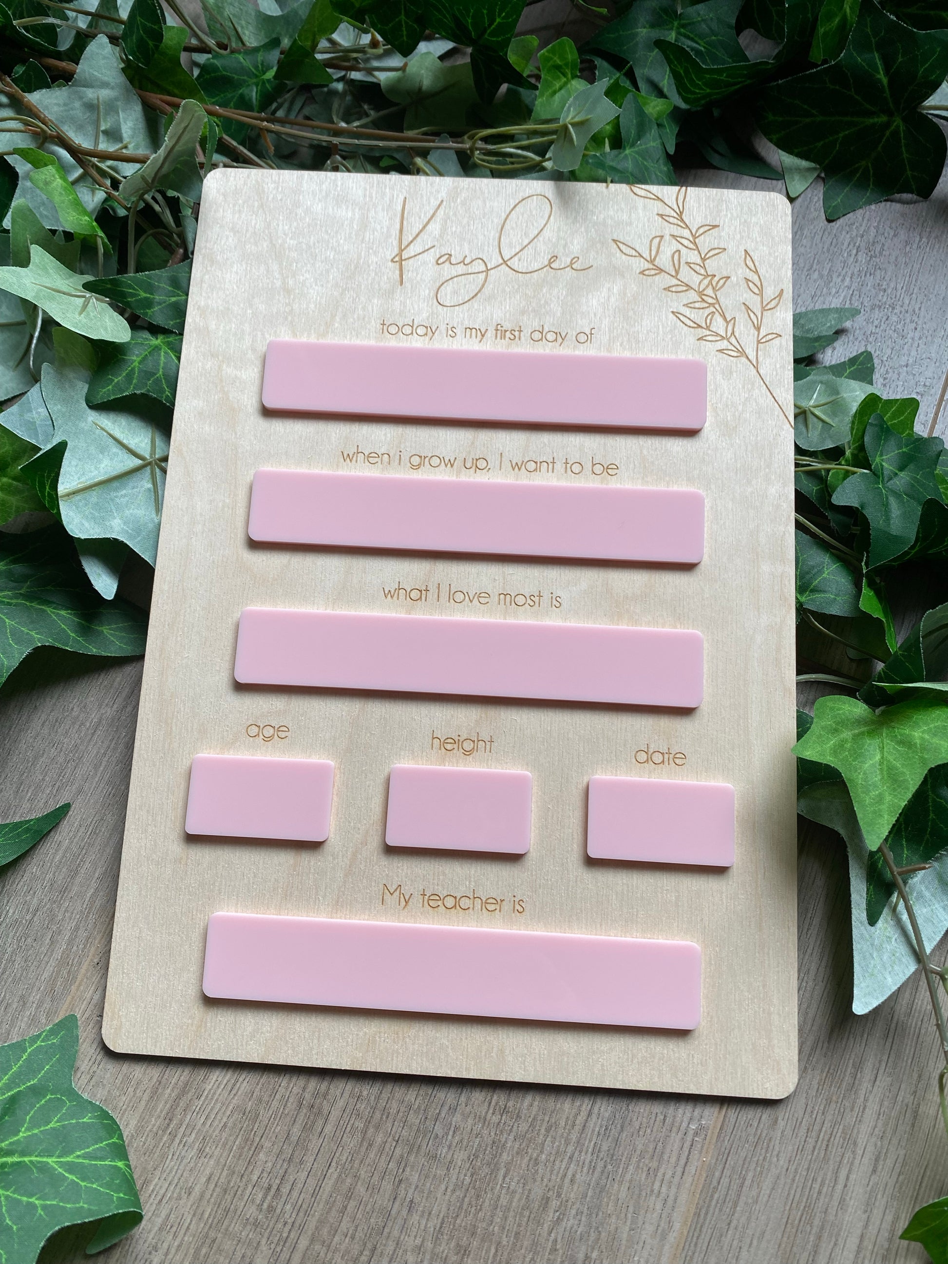 Whether it be First Day of School, Daycare, Sport of any other First, capture the memory with a photo using these boards to record the Memory, Age, Height, Date, Teacher & What I want to be when I grow up.