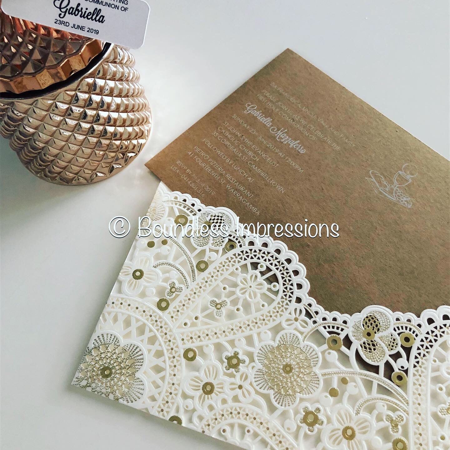 DIY White Pocket Lace LaserCut Invitation Enclosure + Envelope